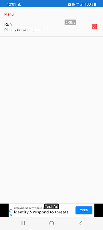 When you press the start button, the screen shows the network speed in real time.