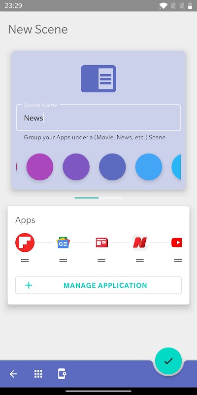 Создавая сцены и используя их для группировки ваших приложений, которые вы обычно используете, одно за другим, Nano Next подготавливает остальные для вызова ваших приложений в определенном порядке, который вы контролируете с помощью уведомления.