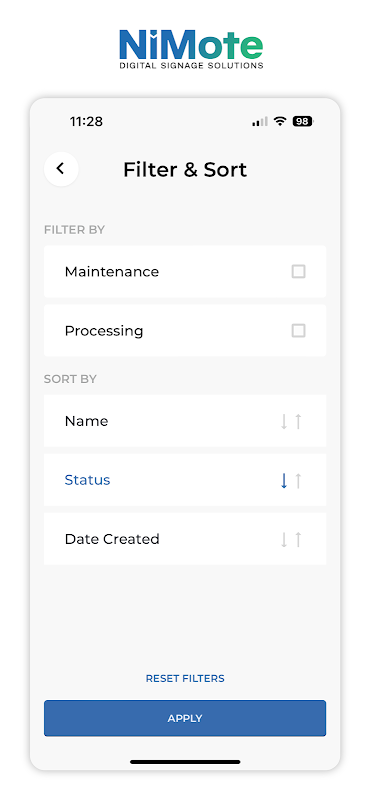 Интерфейс мобильного бэк-офиса для NiMote Digital Signage