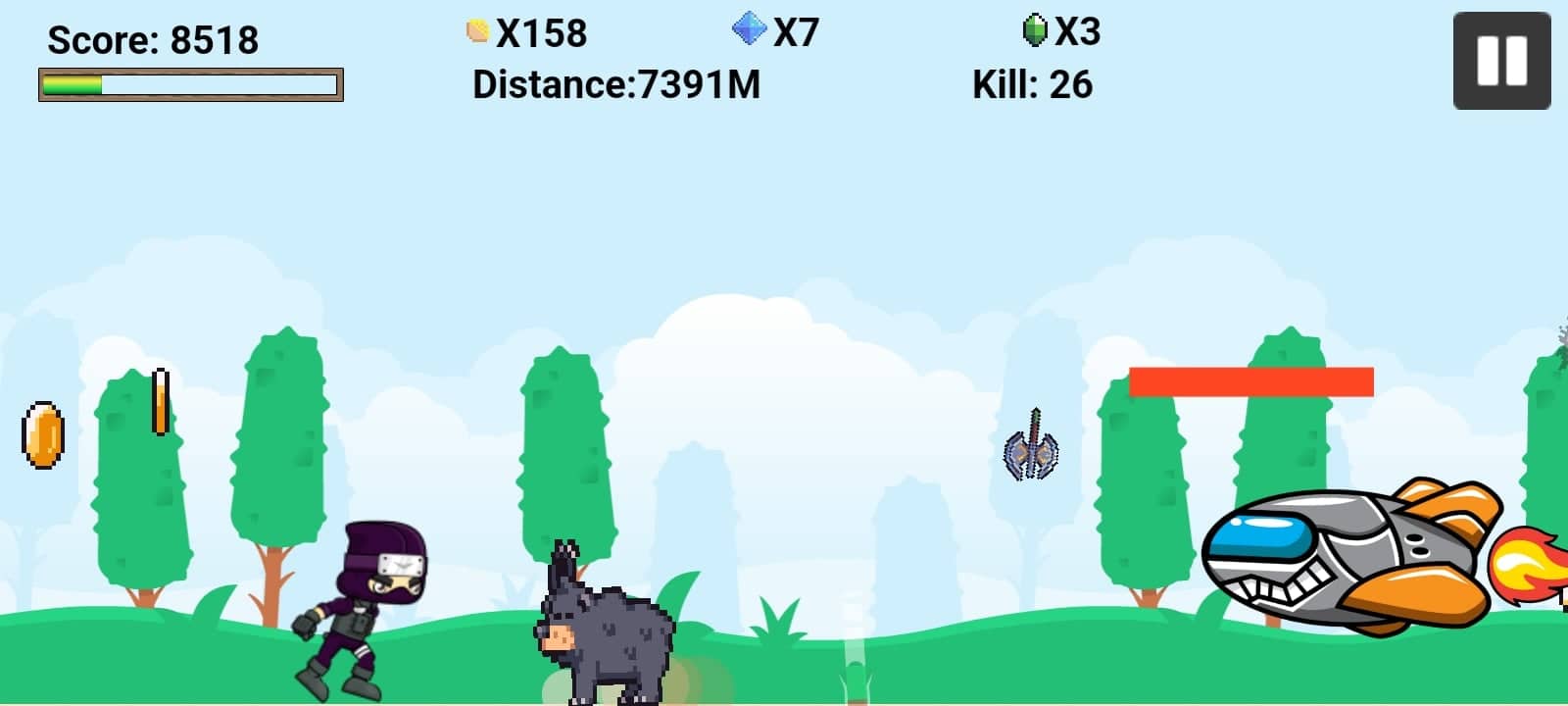 Ninja Run - দৌড়া পাগলা - это бесконечная игра-раннер, в которой вы играете роль ниндзя и бежите очень быстро вопреки всем обстоятельствам, чтобы спасти свою возлюбленную. Собирайте бонусы, монеты, алмазы и изумруды, чтобы купить новое оружие и улучшить свое. Сражайтесь со сложными боссами и врагами, чтобы это стоило того.