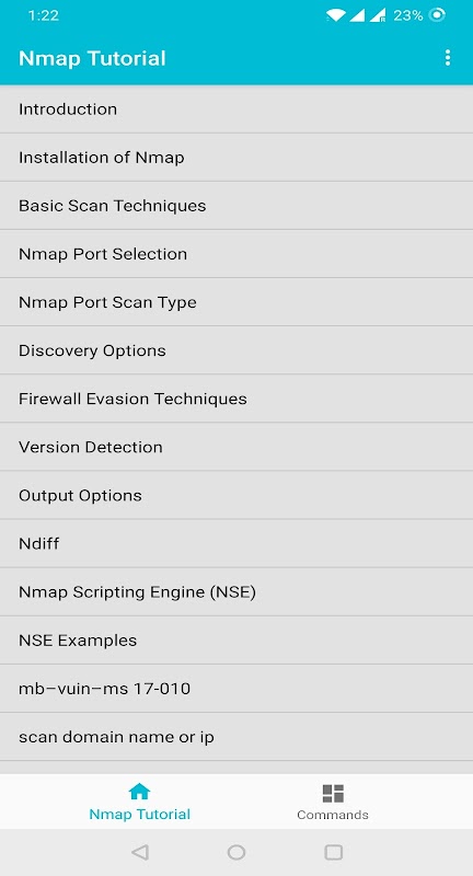 Информация Nmap commands and Cheatsheet Tutorial Offline APK