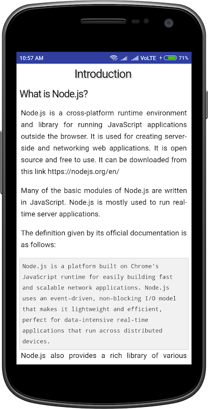 Node Js Tutorial app collections of Categories are below and provide all this Topic Like,