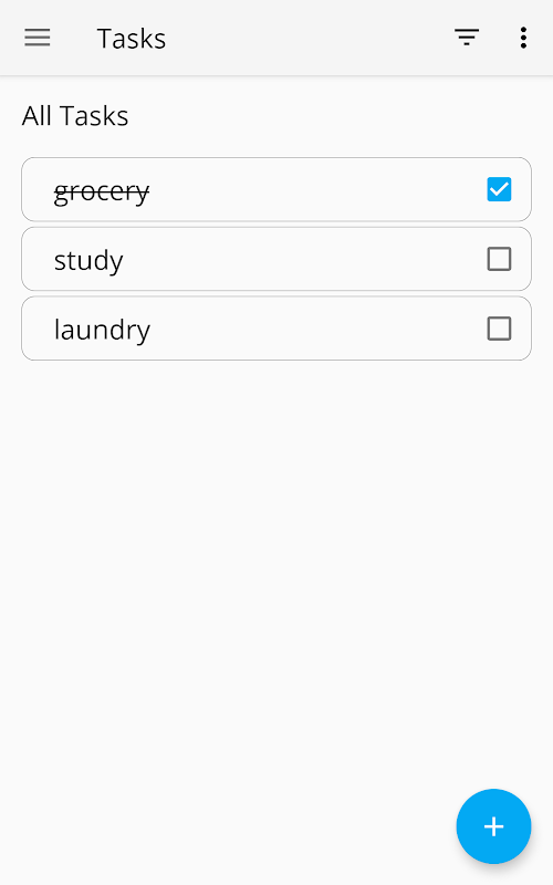 An app for writing notes and tasks. Notes and tasks can be saved. Tasks can be checked off as completed and sorted by completion status.