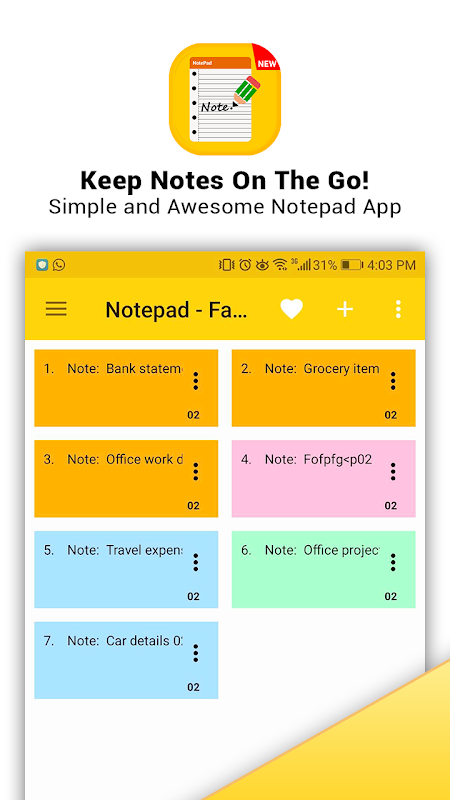 Это приложение для заметок Notepad - быстрое и безопасное приложение для заметок - хороший способ напомнить о корректировке даты для написания заметок. Для телефонов Android доступно множество приложений для напоминаний, которым вы можете доверять, чтобы преуспеть в своем списке дел. Если вам нравится, что вы никогда не забываете открывать эти приложения, чтобы проверить список. , Это приложение для заметок является отличным инструментом для создания блокнота в телефоне Android. Это приложение блокнота очень простое и удобное в использовании. Этот блокнот отлично подходит для записи важных задач, и он проще, чем любой другой блокнот.