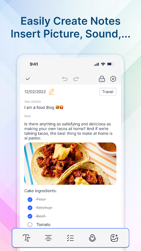 ✅ Помимо текста, приложение также поддерживает создание заметок с записями и изображениями.