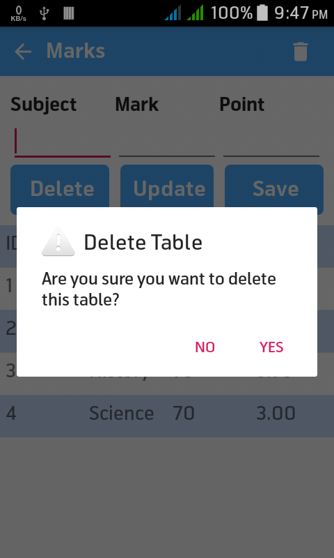 _ To enter data into the table select the table from slide drawer then enter data and then press save.