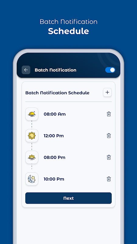 2). Пакетное уведомление: установите определенное время для получения уведомлений, это называется пакетным уведомлением. В этой функции вы должны выбрать некоторый интервал времени, когда вы хотите получать уведомления. Настройки приложения здесь, в настройках этого приложения, у вас есть два классифицированных варианта.
