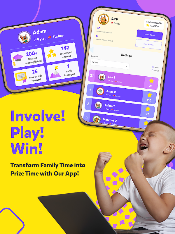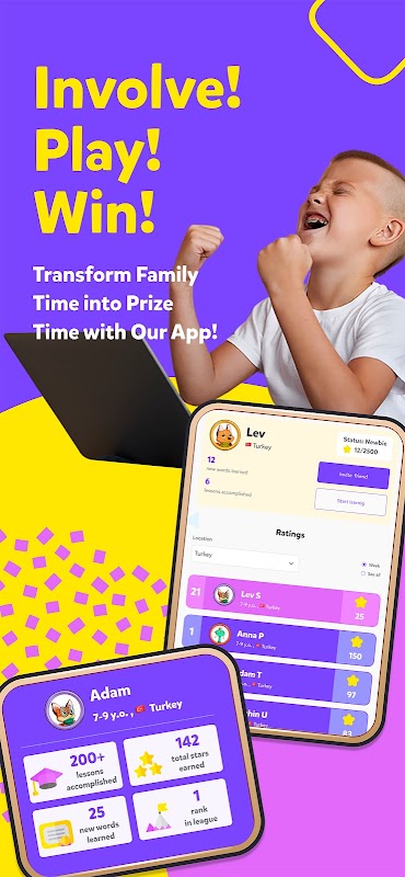 Это приложение является семейным делом! Наблюдайте, как ваши дети погружаются в захватывающий мир изучения английского языка, а вы находитесь рядом с ними, чтобы поддержать и подбодрить их.