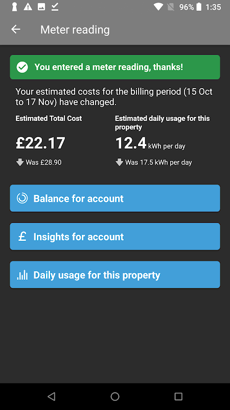 ~ Enter your meter readings as often as you like to avoid unexpected bills.