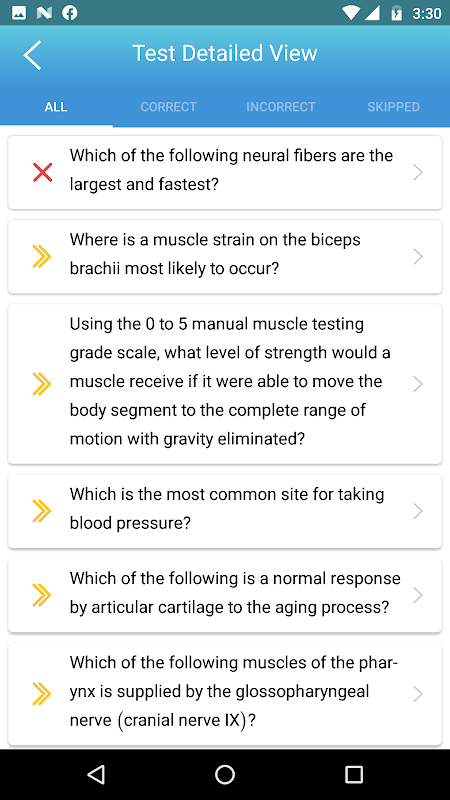 This app contain questions from the book 'Saunders Q&A Review for the Physical Therapist Assistant Board Examination' (ISBN: 978-1-4557-2894-7). With more than 1000 questions, the app provides the practice needed to succeed on the National Physical Therapy Examination (NPTE) for Physical Therapist Assistants. The questions are divided into 4 sections and each section has a wide variety of scenarios, diagnoses, patient populations, practice settings, and types of questions designed to help you prepare for the exam. This is the tool that you need to prepare for the examination with confidence.