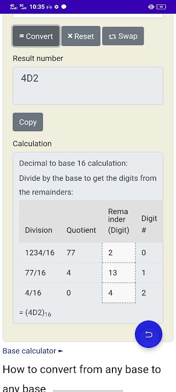 Преобразуйте исходную базу в десятичную (основание 10), умножив каждую цифру на основание, возведенное в степень числового числа (начиная с правой цифры числа 0):