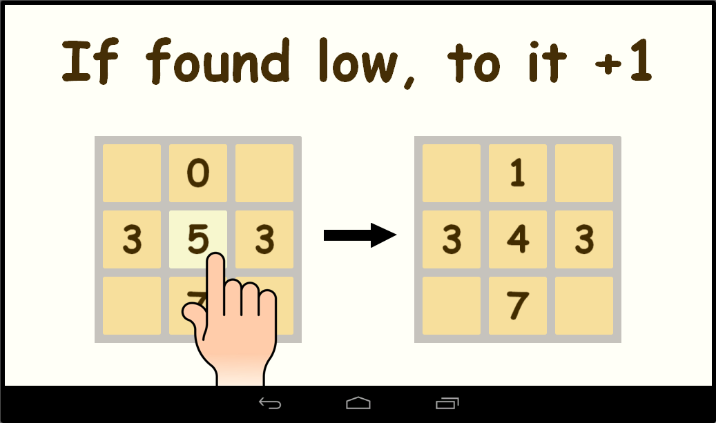 При нажатии на желтую цифру, если рядом есть меньшее число, ему отдается единица.