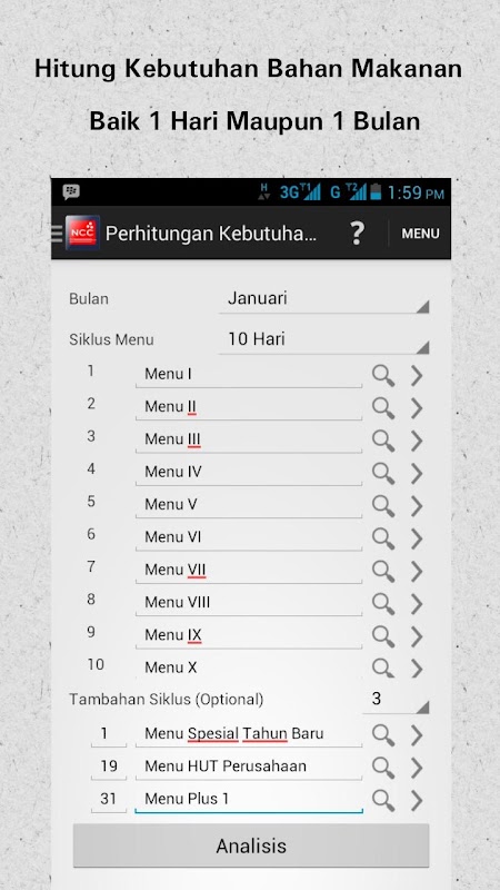 3. Menghitung kebutuhan Bahan makanan Сату хари