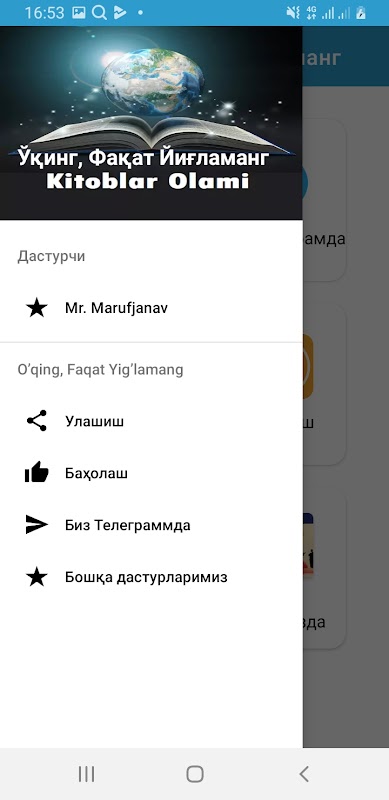 Bizning aziz kitobxonlarimiz uchun navbatdagi ajoyib kitob. Siz ushbu kitobdan o’qir ekansiz dungyoga boshqacha nigoh bilan qarashni boshlaysiz. O’zingiz uchun yangidan yangi fikrlarni kashf qilasiz. Siz uchun juda foydali kitob. Oxirigacha o’qishni maslaxat beramiz. Sizlarga ozgina foydamiz tekkan bo’lsa bundan biz juda xursandmiz. Kitoblar Olami yozuviga bosib bizning ko’plab boshqa dasturlarimizni yuklab olishingiz mumkin.