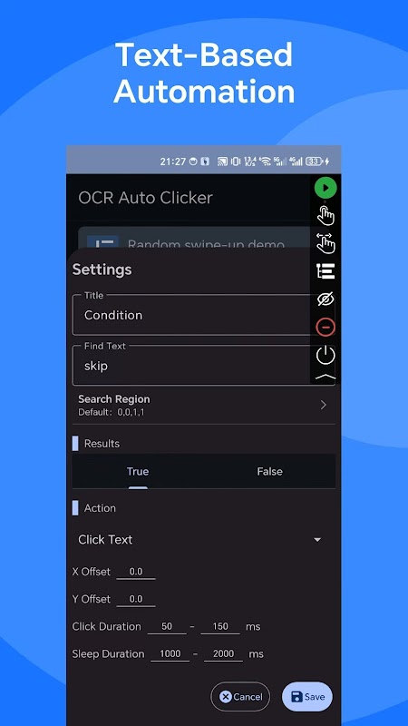OCR Auto Clicker — это интеллектуальный инструмент автоматизации, созданный на основе службы специальных возможностей Android и технологии распознавания текста на экране (OCR). В отличие от традиционных автокликеров, которые полагаются на фиксированные координаты, OCR Auto Clicker может распознавать текст на экране и запускать соответствующие действия, делая автоматизацию умнее, гибче и точнее.