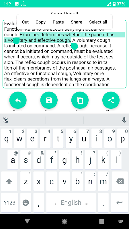 OCR Text также покажет вам результат в текстовом поле редактирования, где вы можете изменить любой текст, если хотите, вы можете копировать, сохранять и делиться текстом.