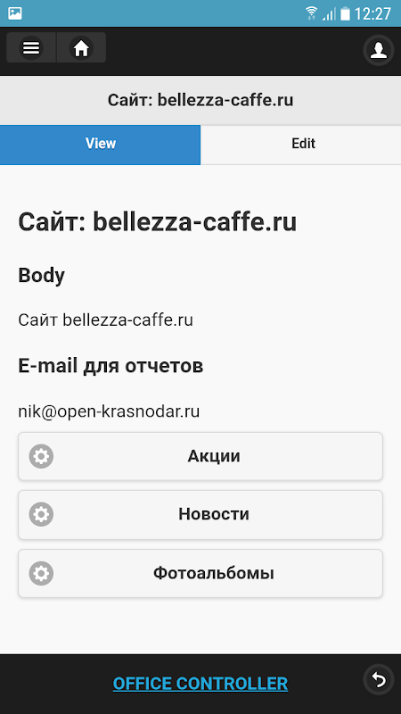 Приложение упрощает работу с виджетами вашего сайта размещенными используя облачный сервис - OFFICE CONTROLLER.