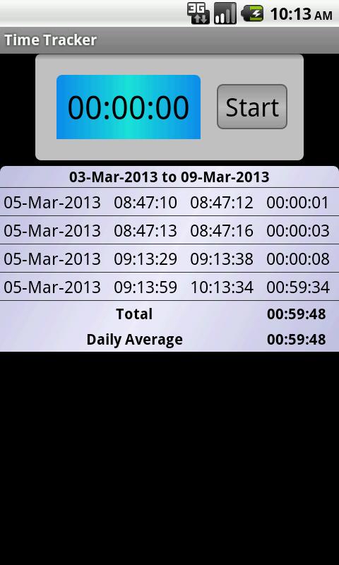 2) The weekly summary list of the current week will be visible below the timer when there is at least one entry