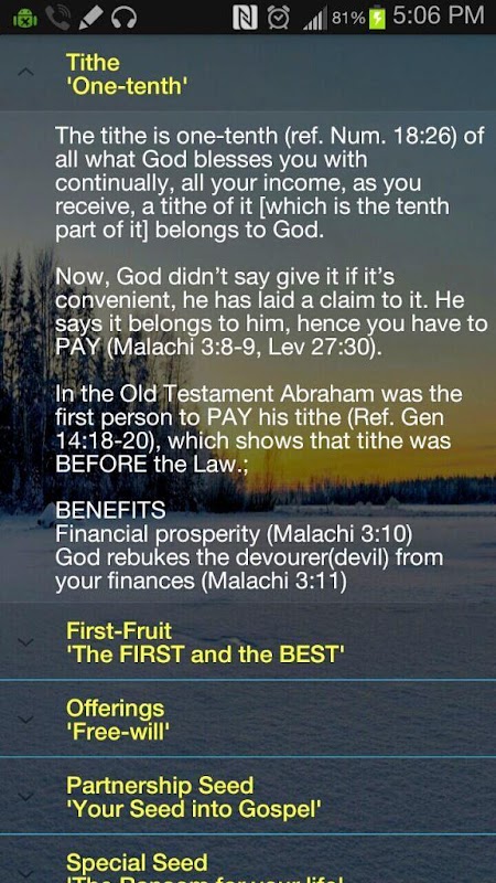 OFFTRACK приложение предлагает легкий способ для отслеживания ваших десятину подач, и добровольные приношения, которые делятся на семена партнерства, первого фруктовых предложений, обещаний и т.д.