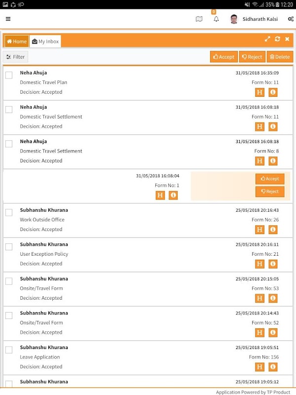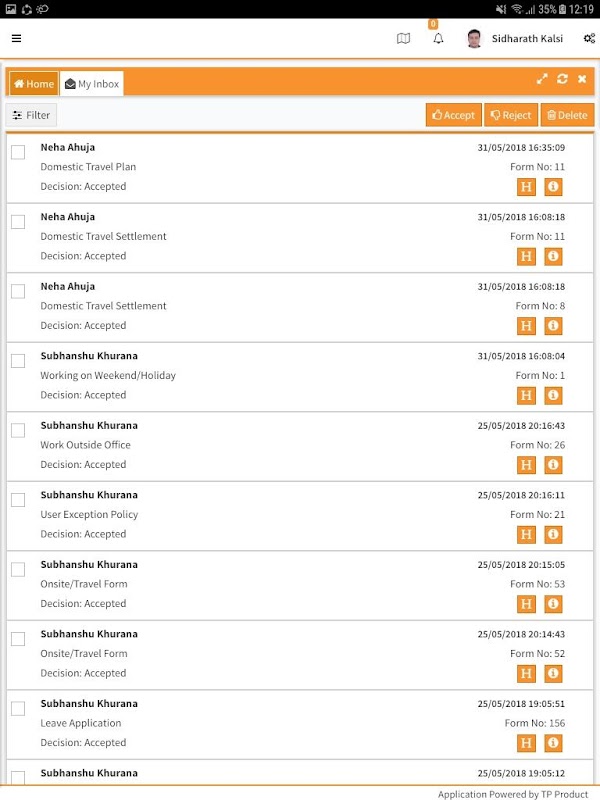 * Он также имеет Входящие где существует принято или отвергнуто формы.