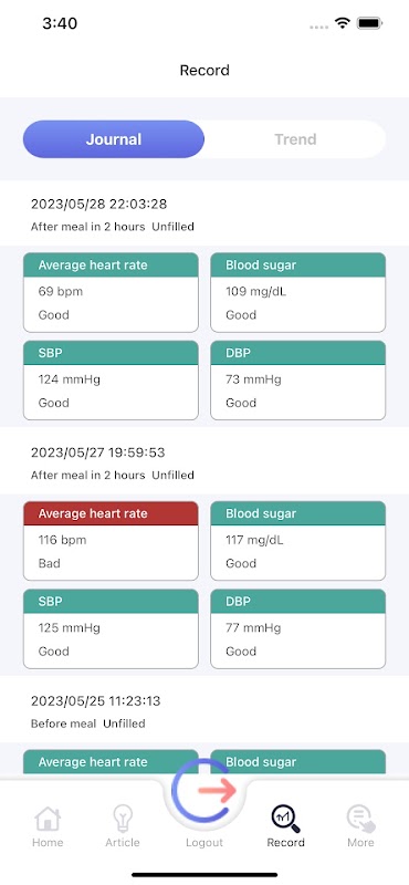Основная функция этого приложения — помочь пользователям вести учет своих медицинских данных, делая ежедневное управление здоровьем проще и удобнее. С помощью приложения пользователи могут регистрировать данные о своем здоровье в режиме реального времени и автоматически создавать графики и анализировать тенденции, чтобы помочь пользователям четко понимать изменения своего физического состояния. Система также предоставляет напоминания и рекомендации на основе записей, позволяя пользователям своевременно выявлять потенциальные проблемы.