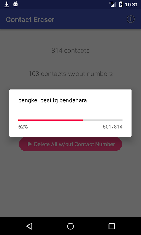 - Имеет возможность удалить контакты без номера телефона