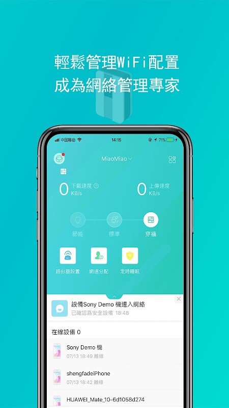 透過應用程式管理家居網絡,匯聚簡易WiFi設置及資訊查詢、網速分配、定時睡眠、高清視頻通話、家庭相冊等功能,致力於打造便捷、智慧、有溫度的一站式數字家庭服務入口,並通過家庭統一賬戶,豐富家庭成員權益。