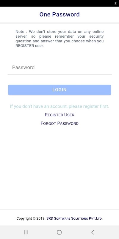 **Note : We don't store your data on any online server. We use your local device storage. So please remember or note down your security question while creating user for recover forgot password.