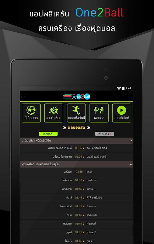 - อัพเดทผลบอลสด เป็นภาษาไทยในทุกลีก สามารถเลือกลีก เลือกทีมโปรด