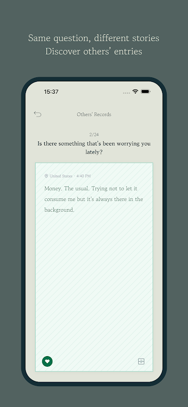 Каждый день вам будет задаваться один вопрос, приглашающий вас поделиться своими мыслями.