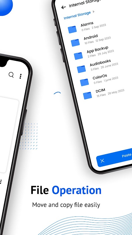 Он поддерживает все действия по управлению файлами (открытие, поиск, навигация по каталогу, копирование и вставка, вырезание, удаление, переименование, сжатие, распаковка, передача, загрузка, добавление в закладки и организация) для различных форматов файлов, включая медиа и apk. Файловый менеджер также распознает несколько форматов файлов, включая музыку, видео, изображения, документы, APK-файлы и zip-файлы.