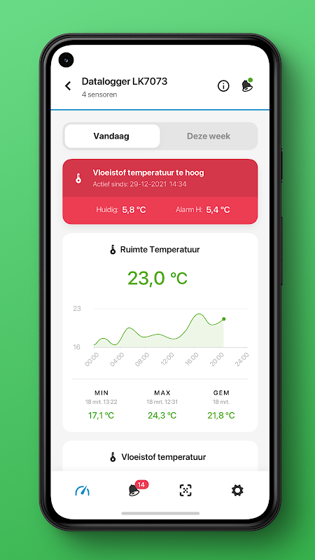 Если измерения показывают, что установленные вами предельные значения превышены, вы немедленно получите электронное письмо или текстовое сообщение на свой смартфон. Таким образом, вы можете принять незамедлительные меры.