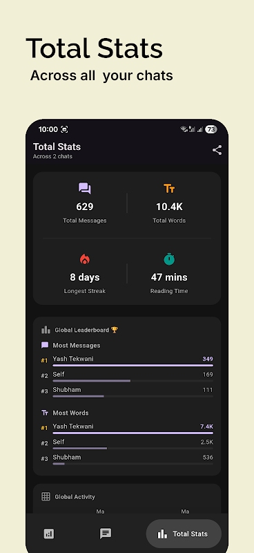 Объем сообщений: Посмотрите общее количество сообщений, слов и символов, которыми вы обменялись.