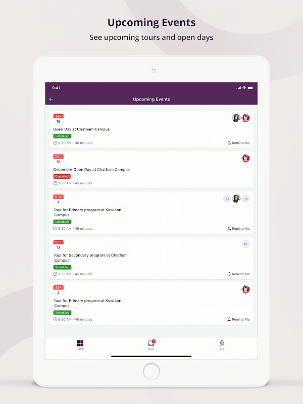 Не забудьте о важных мероприятиях! В расписании указаны все мероприятия, такие как экскурсии и дни открытых дверей, чтобы вы могли легко их найти.