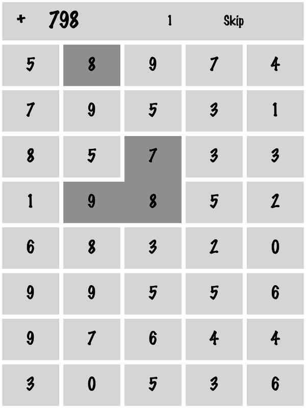 Оператор взаимодействия последовательностей применяется для всех выбранных чисел (например, 10 + 10 => 20 или 11 или 2).