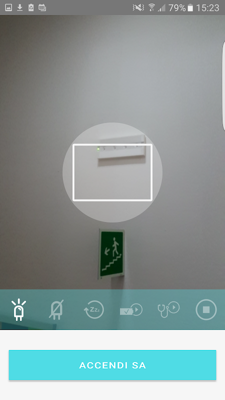Все операции управляются и хранятся APP посвященный технологии Opticom: С помощью простых команд можно запрограммировать аварийно-спасательное оборудование, действующее на Автономии, поток, операции (SE-SA-PS), периодичности и функциональной автономии теста, название и местонахождение "устройство на заводе. Что касается осветительных приборов вы можете включить или отключить датчик освещенности, функция Зеклало и динамической посещаемости системы на ее запрограммированное время в наиболее подходящим образом.