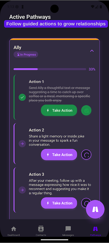 Orbit-AI помнит важные вещи, чтобы вам не пришлось этого делать. Вы будете получать автоматические напоминания и даже предлагаемые сообщения на основе вашего последнего взаимодействия, личных предпочтений и особых дат. От сердечных пожеланий на день рождения до значимых последующих действий — Orbit-AI позаботится обо всем.