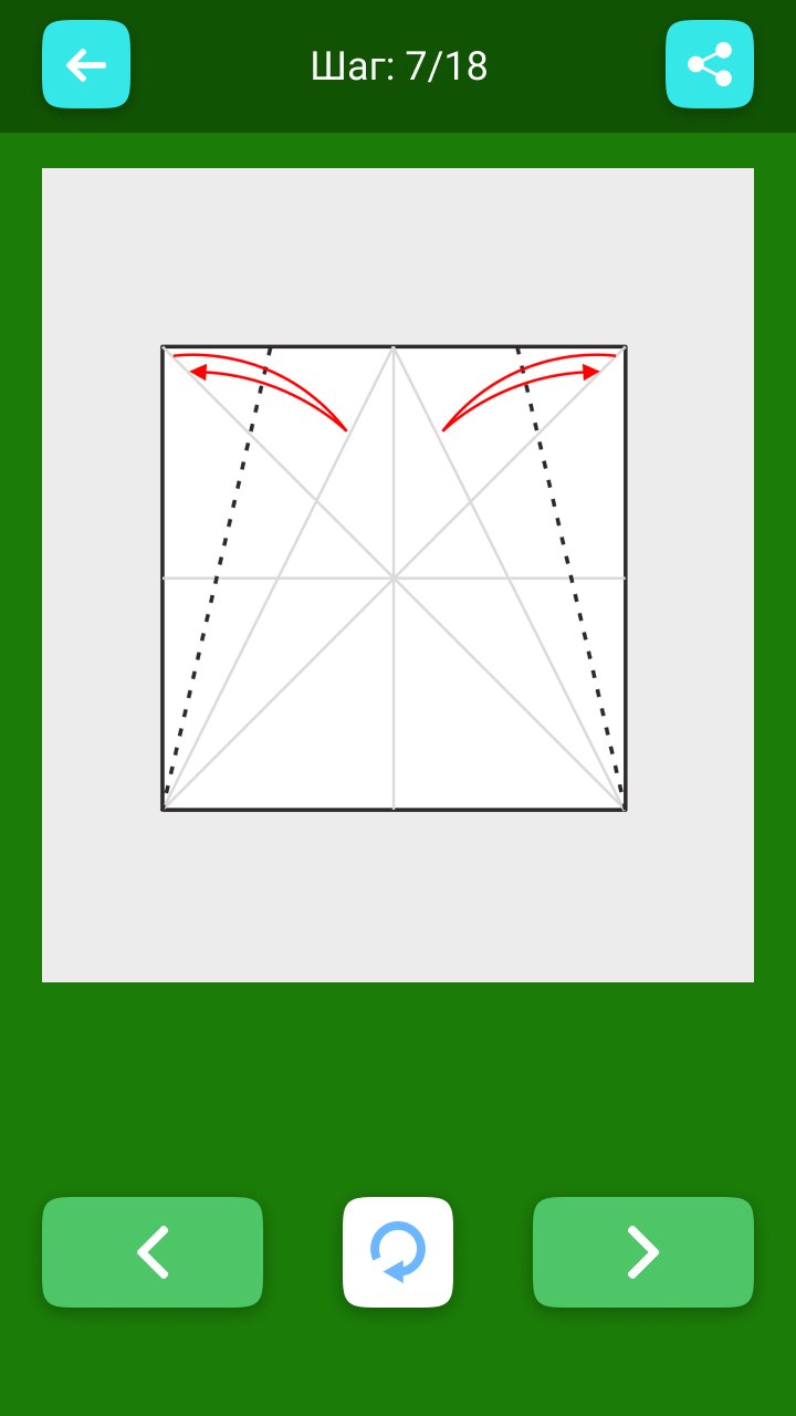 Для того, чтобы сделать оригами из этого приложения вам потребуется цветная бумага формата А2, А3 или А4. Но вы можете использовать и обычную белую бумагу. Старайтесь как можно лучше и точнее делать сгибы. При необходимости можете пользоваться клеем для закрепления формы. Это просто рекомендации, вы можете использовать более удобный размер бумаги.
