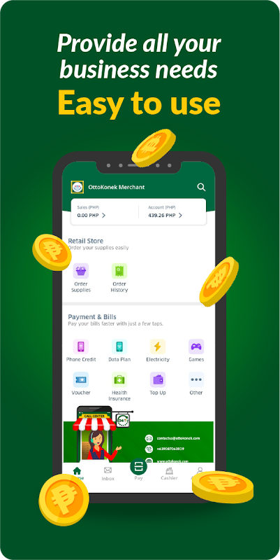 Приложение OttoKonek Merchant App предназначено для микропредпринимателей с магазином сарисари, киоском или любыми другими подобными предприятиями. Приложение OttoKonek делает магазины и ларьки более оживленными и прибыльными.