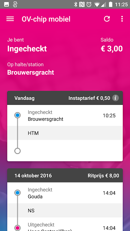 Регистрация на www.ov-chipmobiel.nl. Приложения не могут непосредственно через приложение.
