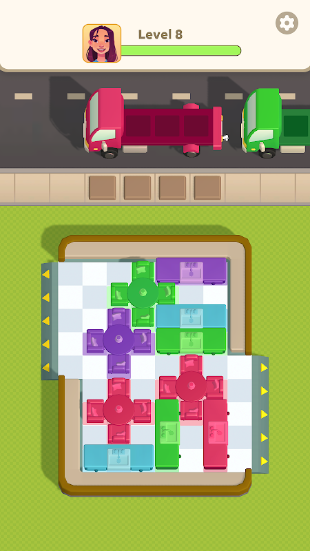В этой увлекательной и захватывающей игре-головоломке вы будете перемещать, сортировать и отправлять мебель из комнат уникальной формы в соответствующие цветные грузовики.