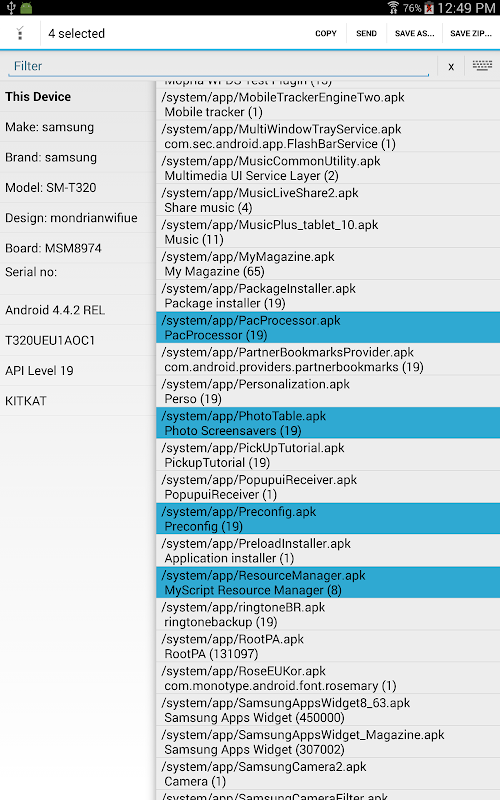 Обзор пакетов, установленных на вашем устройстве, в том числе: