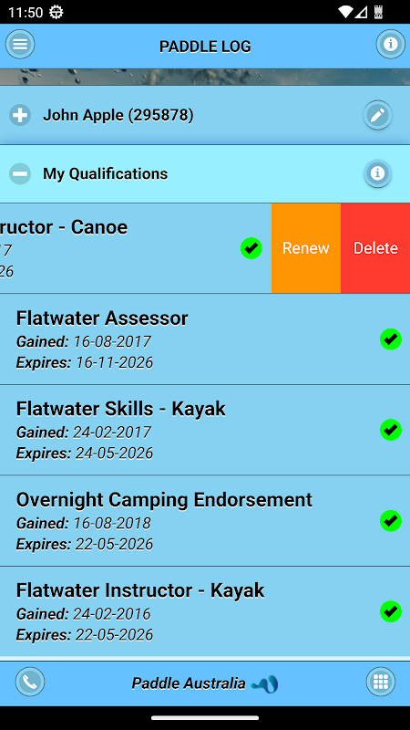 Paddle Log позволяет пользователям загружать данные своих PAQS квалификации и визуально напоминают об их сроке годности. Когда квалификация подлежит продлению, Paddle Log можно рассчитать квалификационные баллы для квалификации обновления и представить обновление ПА на утверждение.