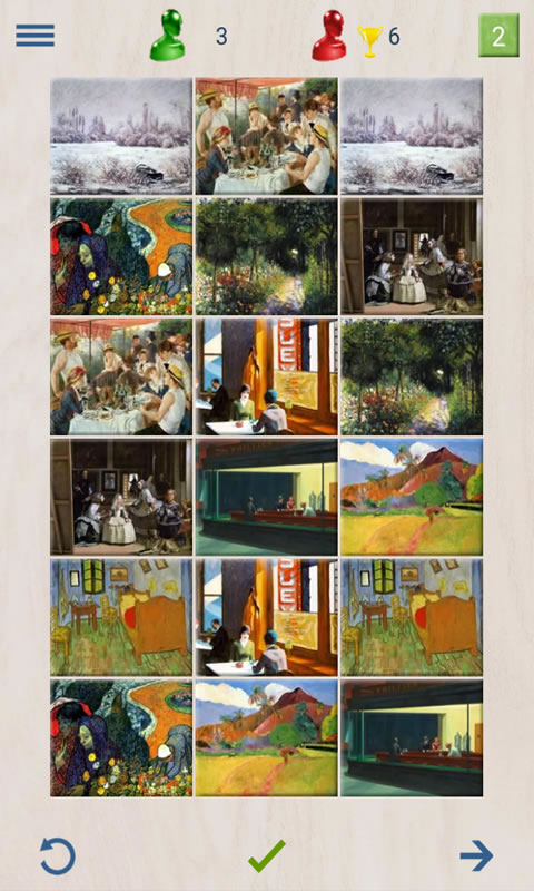 Карточки игры сформированы из великих произведений живописи всех времен.