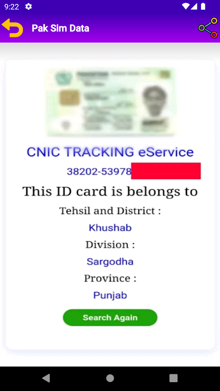 Приложение Pak Sim Data имеет базу данных всех сетей в Пакистане, в которую включены все детали любого номера телефона. Эта информация включает в себя имя владельца сима, его/ее номер CNIC, адрес, общее количество симов по его/ее CNIC, номер сима и имя отца владельца. Теперь вы можете легко проверить любую информацию о номере с помощью этого приложения.