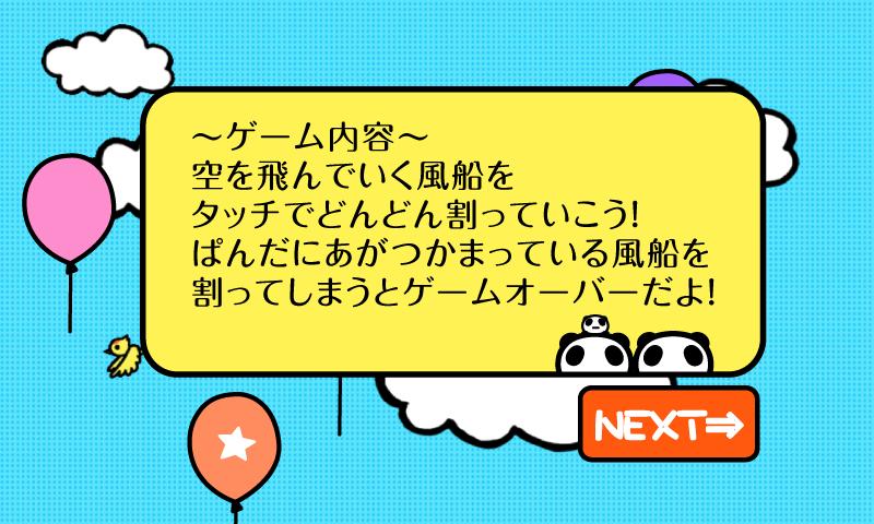 空を飛んでゆく風船をタッチで割っていくゲームです。