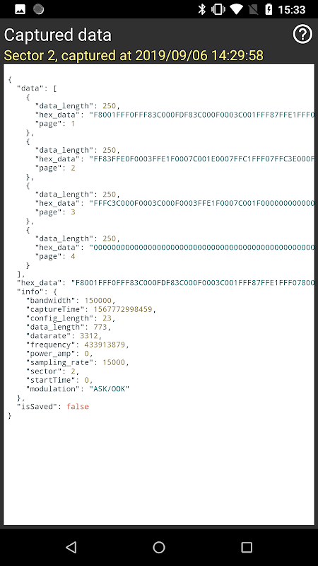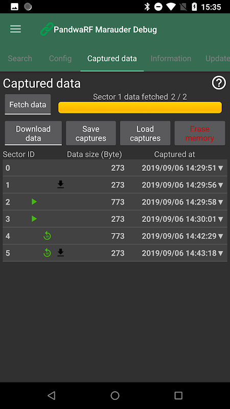 Мародер может быть настроен на автоматическое прослушивание и запись всех радиочастотных данных на предварительно настроенных частотах. Захваченные данные автоматически демодулируются и сохраняются во внутренней памяти продукта. РЧ-данные могут быть воспроизведены при необходимости с помощью специального приложения Android.