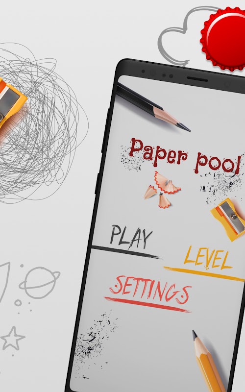 В игре Paper Pool вам предлагается провести матч прямо на бумаге среди канцелярских принадлежностей: карандашей, ластиков, точилок, скрепок, зажимов и прочих мелких и крупных предметов, которые могут находится на столе. Они и будут выполнять роль препятствий. Ваша задача — забросить шар в круглую лунку, при этом у вас не будет по нескольку ударов, как в обычном гольфе, вы должны попасть с одного единственного раза. Поэтому учитывайте все факторы и объекты.