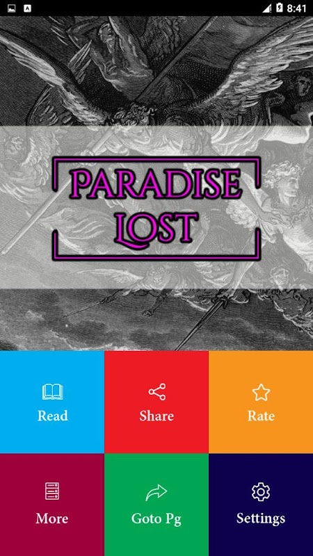 Это приложение поставляется с романом известного автора "Джона Мильтона" под названием "Потерянный рай" . Люди слишком любят романы этого писателя и восхищаются его персонажами. Мы уверены, что вы влюбитесь в этот роман. Так зачем ждать? Загрузите его сейчас и начните читать.