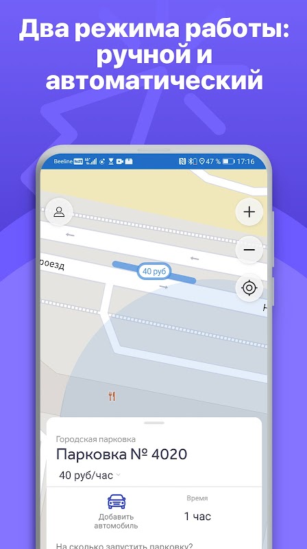 • Подробная карта парковок: легко находите доступные парковки в вашем городе с актуальной информацией о тарифах и зонах.